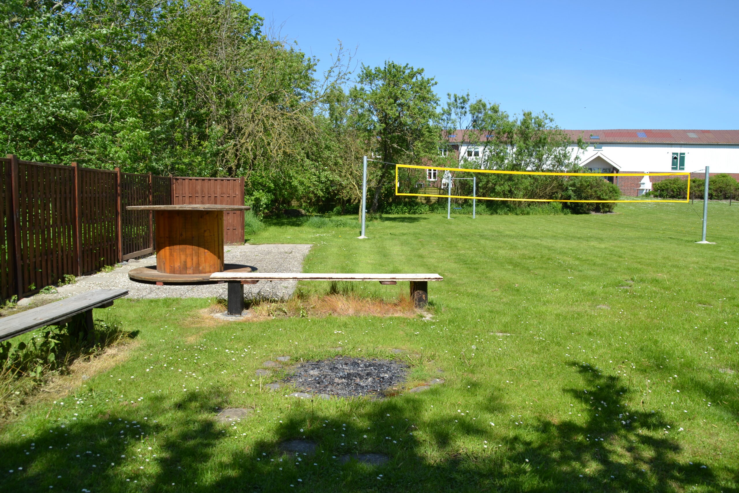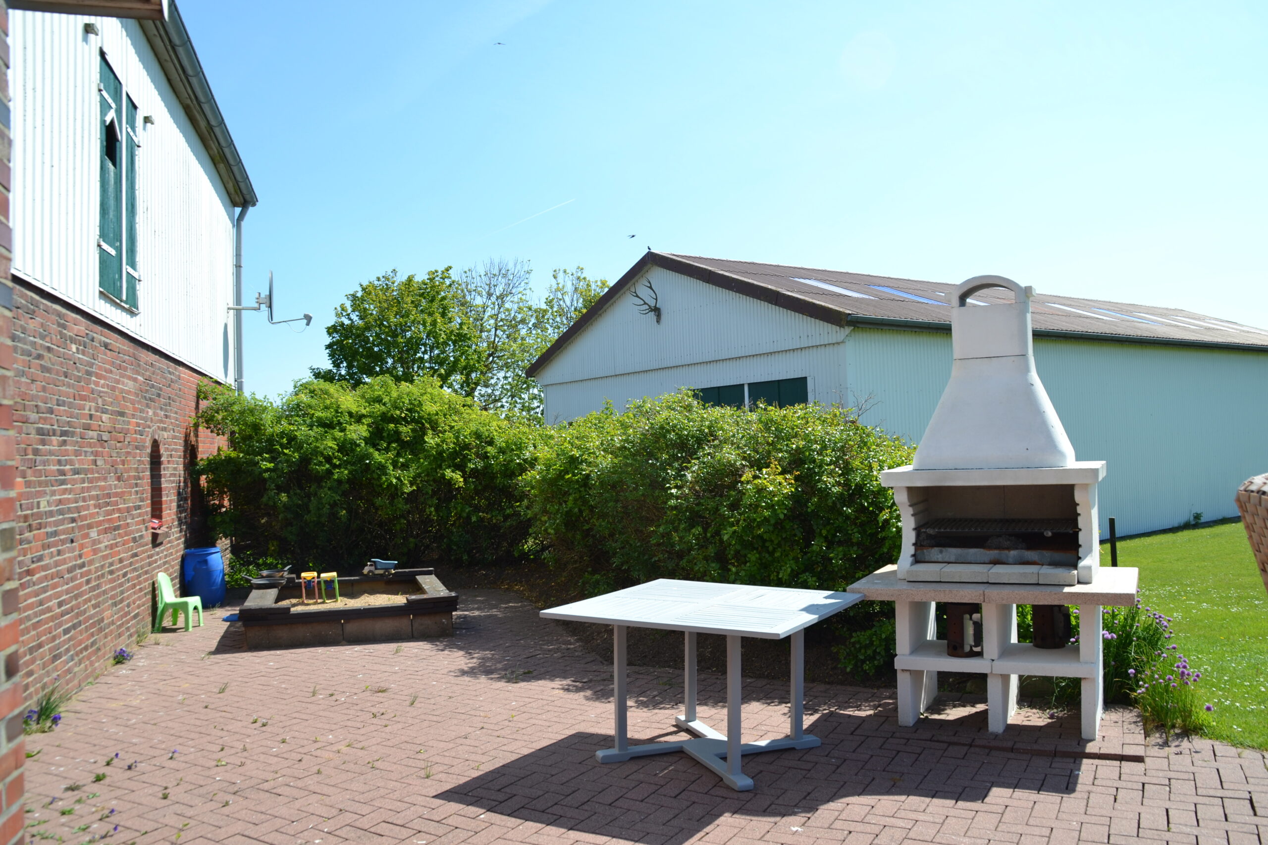 Im Sommer kann die große Dielentür geöffnet werden. Vorhanden ist außerdem ein größerer Garten (ca. 3000qm) mit Grillecke, Lagerfeuerplatz mit Holz. Bolzplatz, Torwand, Schaukel und einem Volleyballnetz.