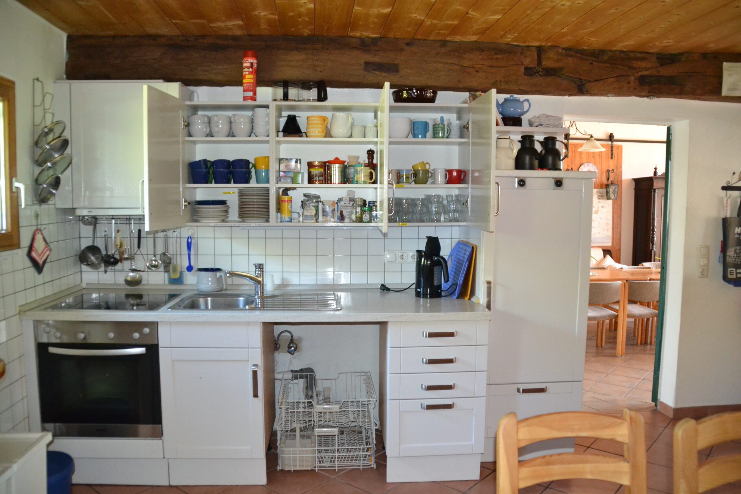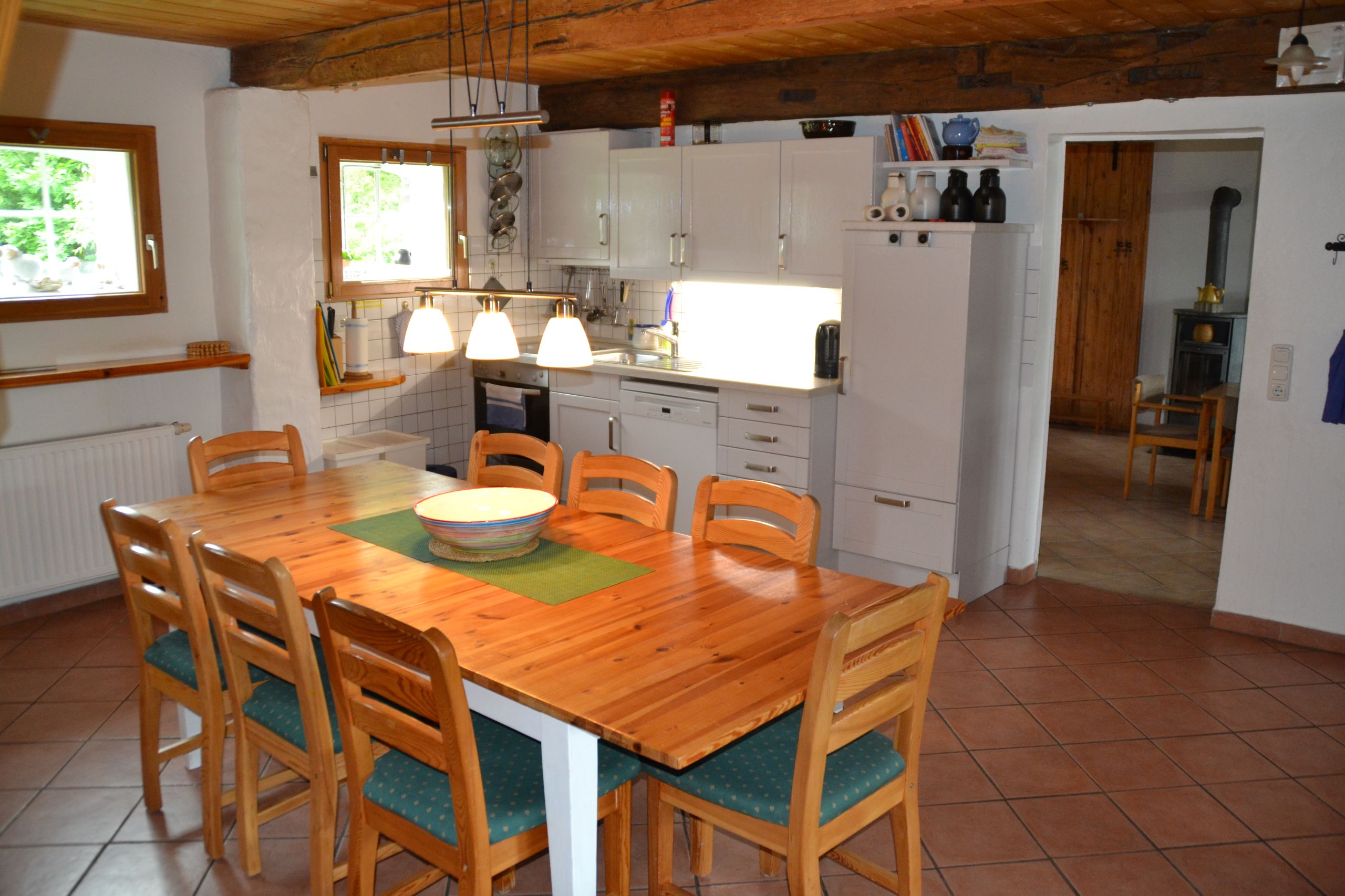 - Küche mit alten Balken und Stallfenstern, mit Sitzgruppe, Einbauküche und Geschirrspüler